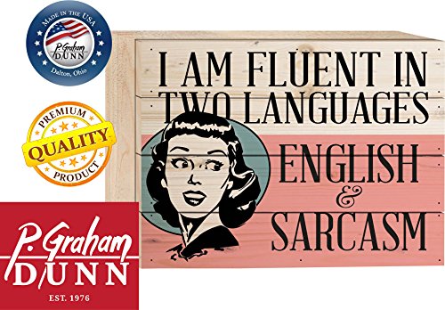 I am Fluent in Two Languages, English and Sarcasm 6 x 8 Wood Plank Design Wall Box Sign