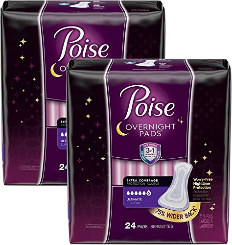-. Title : Poise Overnight Incontinence Pads, Ultimate Absorbency, Extra Coverage, 2 Packs of 24, 48 Pads Total