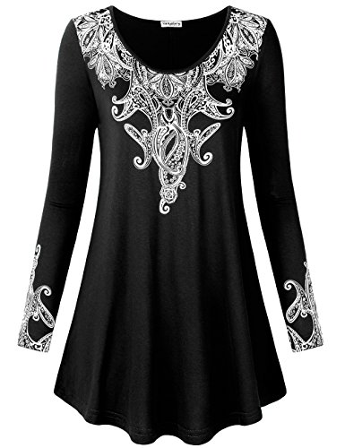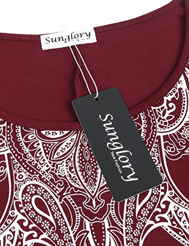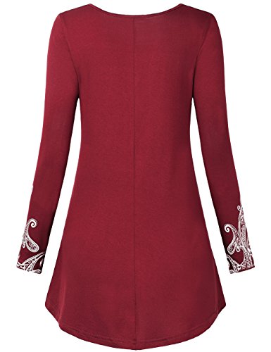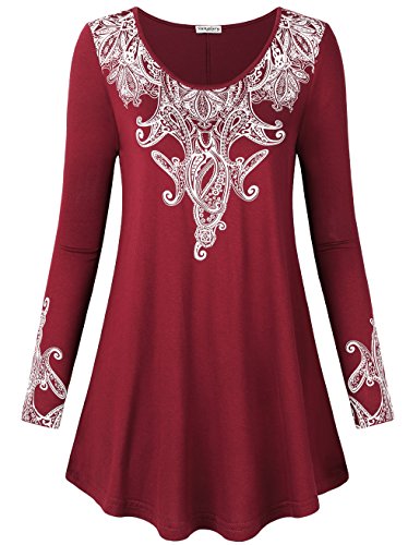 Tunic Top,SUNGLORY Floral Tops 2017 Boutique Chic Clothing Long Sleeve Paisley Tunic Tops Petite Girls Maternity Tops Casual 2018 Spring Red Wine L