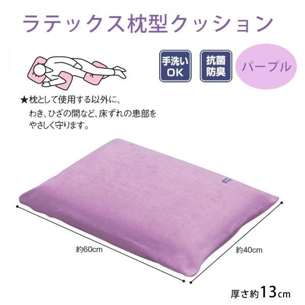 枕やひざの間など多目的に活用できます。 製造国:日本 素材・材質:カバー:綿75%、ポリエステル25%(パイル)中身:ラテックスフォーム(ダンロピロー(R)) 商品サイズ:約60×40×厚さ13cm 重量:約1700g 仕様:洗濯:手洗い抗菌防臭 セット内容:本体カバー ※サプライヤー直送品 ご注文後9~12営業日後の出荷となります【商品名】ラテックス枕型クッション パープル 1050-J