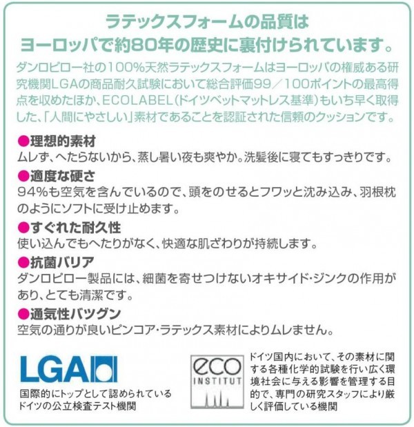 ラテックスを使用した抗菌・防臭性に優れたクッションです。