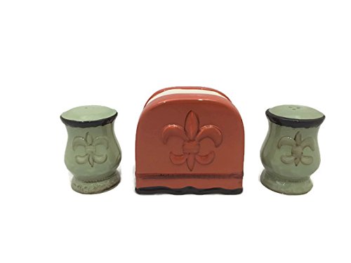 [Product Information]- Tuscany Colorful Hand Painted Fleur De Lis COLLECTION (salt and pepper shaker, napkin holder Set)