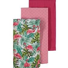 - Set Contains: 1 All Over Print Tea Towel, 1 Hot Pink WaffleTea Towel, 1Pink Geometric Print Tea Towe