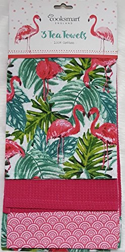 Cooksmartof England Coordinating Tea Towels Flamingos 100% Cotton 18" x 28"