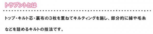 トラプント専用つめ綿と合わせて使用すると、トラプントキルト独自の優しい温もりのある模様が美しく仕上がります。