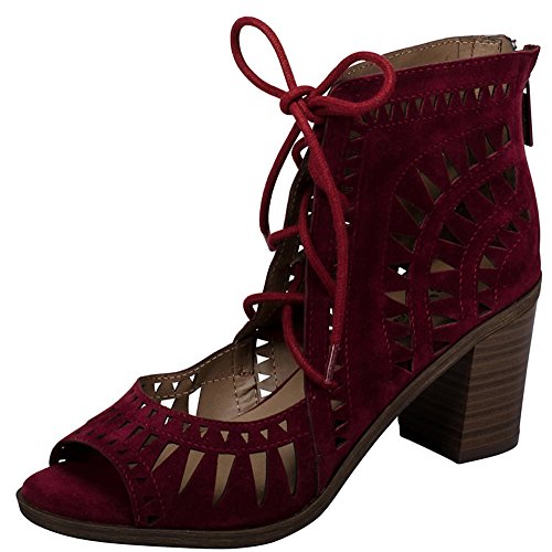 -. Title : Breckelle's Women's Lasercut Stacked Chunky Heel Peep Toe Sandal