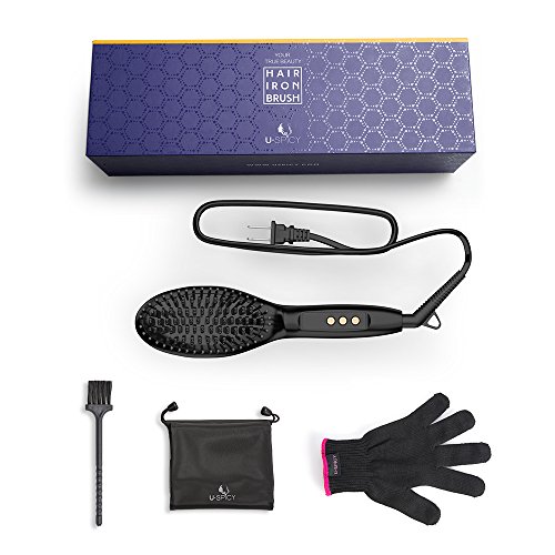 USPICY US-FS005 HAIR STRAIGHTENER BRUSH WITH FREE HEAT RESISTANT GLOVE HAIR STRAIGHTENING BRUSH FOR SILKY FRIZZ-FREE (450?/230?, ADJUSTABLE TEMPERATURE, AUTO LOCK, 30-MIN TIMER, ANTI-SCALD)