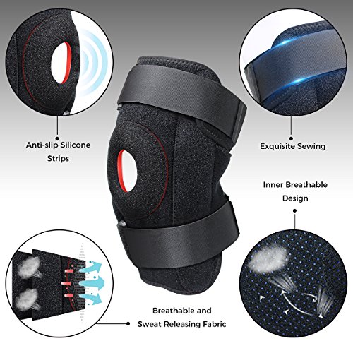 ?BREATHABLE MATERIAL?: High-quality neoprene sleeve offers additional protection and improved blood circulation to the muscles and tendons. Internal perforations draw away excess perspiration from the skin, which gives you a more comfortable experience. Fully adjustable meniscus and ACL brace have dual side stabilizers to maximize protection.