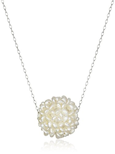 Sterling Silver necklace featuring simple centerpiece of snowball freshwater cultured pearl, approximately 18" cable chain and finished with spring-ring clasp.