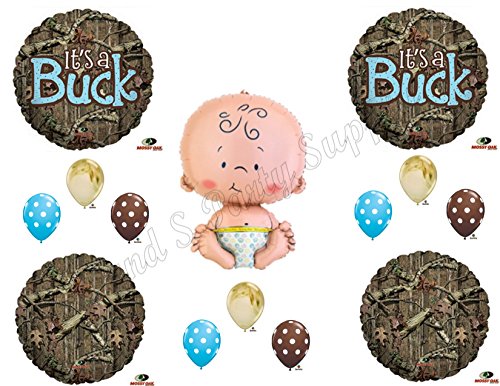 -. Binding : Toy -. EAN : 0792273573632 -. Feature : You will receive a total of 14 balloons: / (1) 24" high Baby in Diaper Shaped Mylar Balloon. / (4) 18" It's a Buck Mylar Balloons, PLEASE NOTE: The plain camo pictured at the bottom are not included, you will get 4 of the It's a Buck ones!! / (6) 11" Polka Dots Latex Balloons...(3) Brown and (3) Blue and (3) 11" Camoflage P.R.Int Latex Balloons.. -. IsAdultProduct : 0 -. Label : Anagram -. Manufacturer : Anagram -. MPN : LYSB011JQ0HLU-TOYS -. PackageQuantity : 1 -. PartNumber : LYSB011JQ0HLU-TOYS -. ProductGroup : Toy -. ProductTypeName : TOYS_AND_GAMES -. Publisher : Anagram -. Studio : Anagram -. Title : IT'S A BUCK CAMOUFLAGE BABY BOY SHOWER Balloons Decoration Supplies Mossy Oak -. UPC : 792273573632