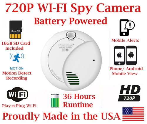 SecureGuard 36 hrs Battery Powered Smoke Detector WiFi Spy Camera