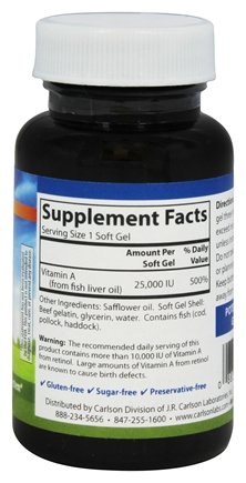 -. Title : Carlson Laboratories - Vitamin A, 25,000 IU, 100 softgels