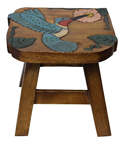 -. Brand : SII -. Color : Green Red and Brown -. EAN : 0606280709147 -. Feature : Measures 10 3/4 x 10 1/2 x 9 3/4 inches / Made of hand carved wood, hand painted / Due to the nature of material and crafting process, some difference in texture and finish may be present / Made in Thailand, imported -. Label : SII -. Manufacturer : SII -. MPN : 1-STHB-11 -. PackageQuantity : 1 -. PartNumber : 1-STHB-11 -. ProductGroup : Furniture -. ProductTypeName : HOME_FURNITURE_AND_DECOR -. Publisher : SII -. Studio : SII -. Title : Red Throated Hummingbird Wood Step Stool Painted 10.75 Inches -. UPC : 606280709147