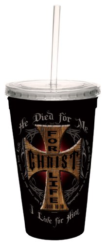 Tree-Free Greetings cc34365 Wooden Maltese Cross: John 10:10 Artful Traveler Double-Walled Cool Cup with Reusable Straw, 16-Ounce