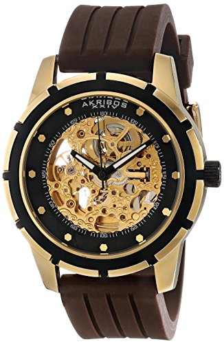 -. Title : Akribos XXIV Men's AKR444YG Premier Delos Automatic Skeleton Gold Watch