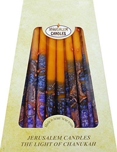 Product DescriptionSafed Hanukkah Candles 45 Smooth Decorative Safed Candles Purple, Blue, Orange With Orange Stripes Chanukah Candles - Made in Israel - 45 Safed Hanukkah Candles0