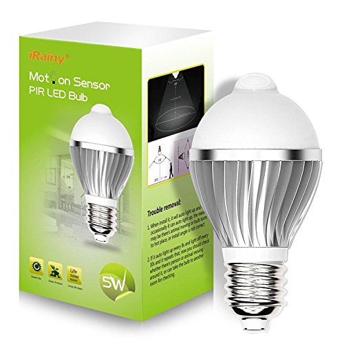 iRainy E27 5W LED Infrared Motion Sensor Pir Light Bulb Lamp Auto Switch Stairs Light (Cold Light)