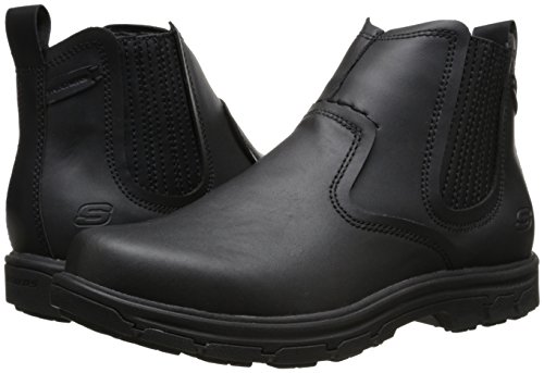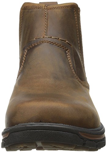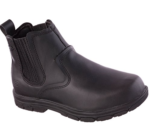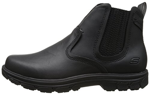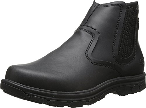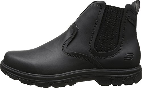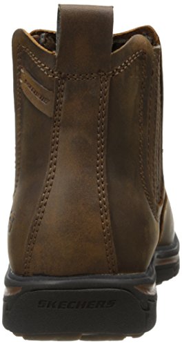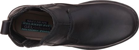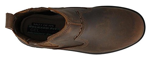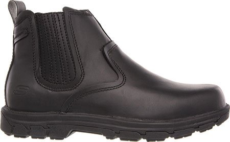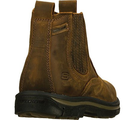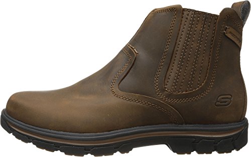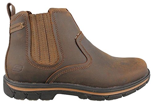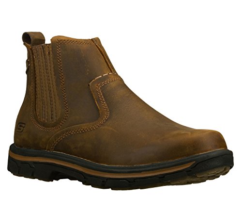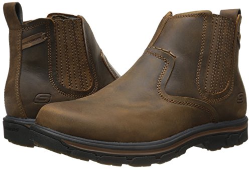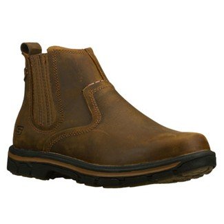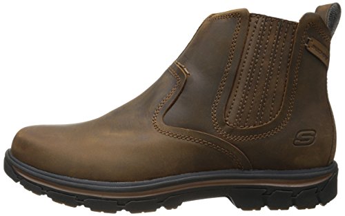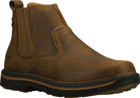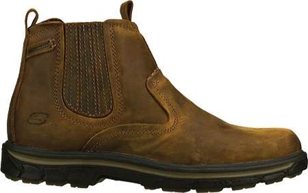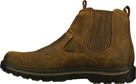 Product Description Handsome style and wonderful comfort are easy to get in the SKECHERS Relaxed Fit®: Segment - Dorton boot. Smooth oiled leather upper in a slip on casual ankle boot with stitching and overlay accents. Gel Infused Memory Foam insole. Memory Foam cushioned comfort insole. Shock absorbing midsole. Midsole contrast stripe accent. Flexible rubber traction outsole. 1 inch built in heel. 0