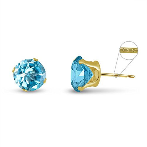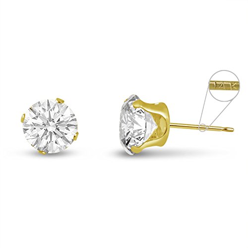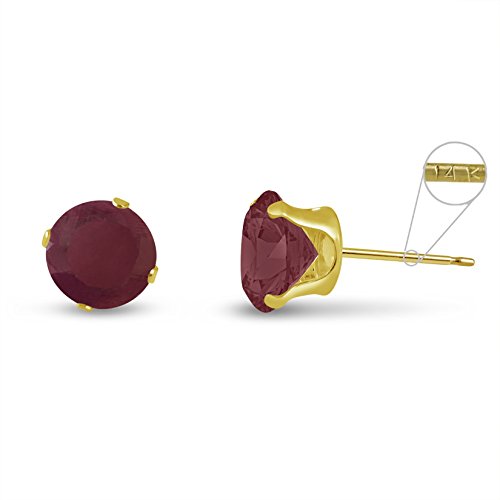 Round 8mm 14k Yellow Gold Genuine Ruby 4.9 cttw Stud Earrings, July Birthstone
