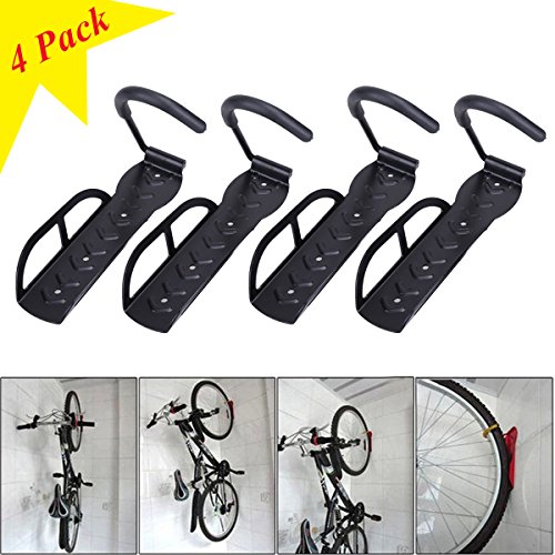 Studio : TF-Godung Publisher : TF-Godung Product Description Features 100% brand new and high quality. Bicycle wall mount hanger for hanging the bike vertically to save space. Made of strong solid steel, load capacity up to 66lbs. Rubber coated hook protects the wheel rim from scuffing or scratching. Predrilled holes make installation easy. Four mounting points and side special design make fastening sturdy. Fixed tire hook distributes weight to the mounting plate. Fit all kinds of bikes Fits on any solid wall.