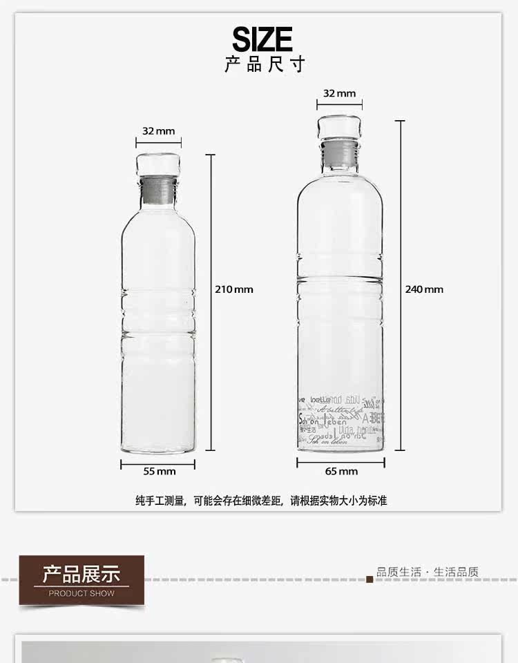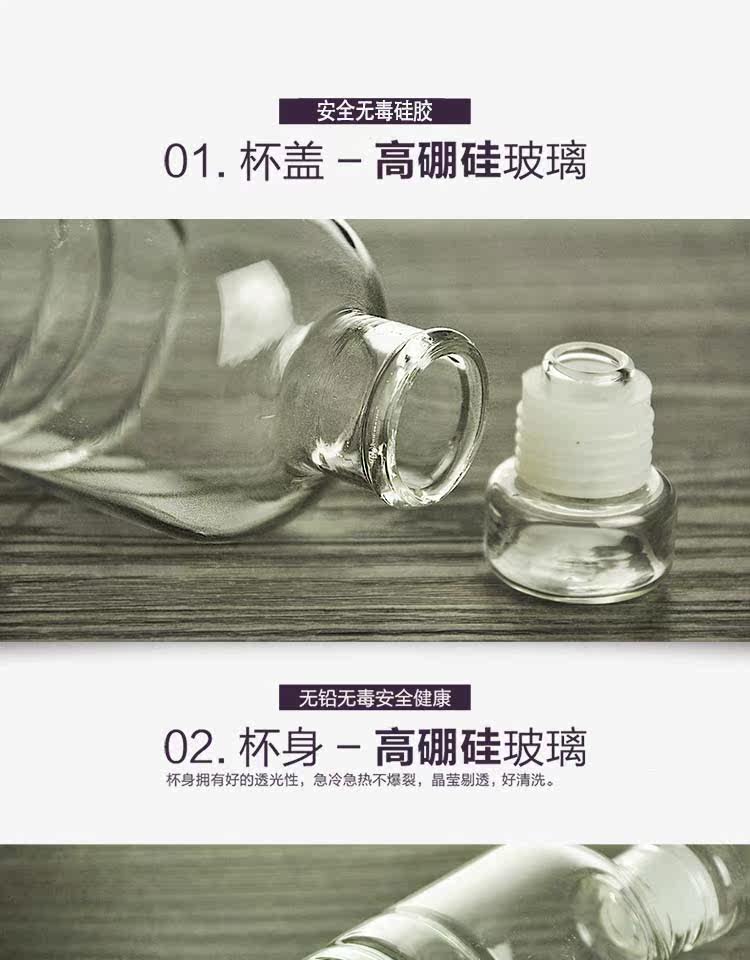家用玻璃水瓶随手杯创意矿泉水瓶密封瓶运动瓶水杯便携柠檬杯