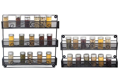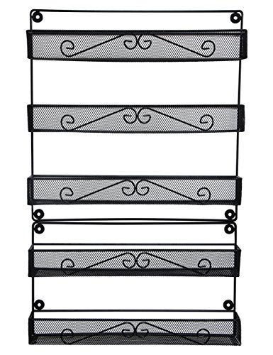 ESYLIFE 2 Tier and 3 Tier Wall Mounted Kitchen Spice Rack Organizer 5 Tier Pantry Door Shelf, Black