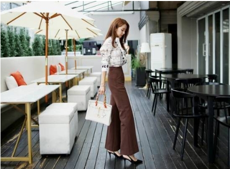 優し気な印象の、ブラウンをベースとしたセットアップです。