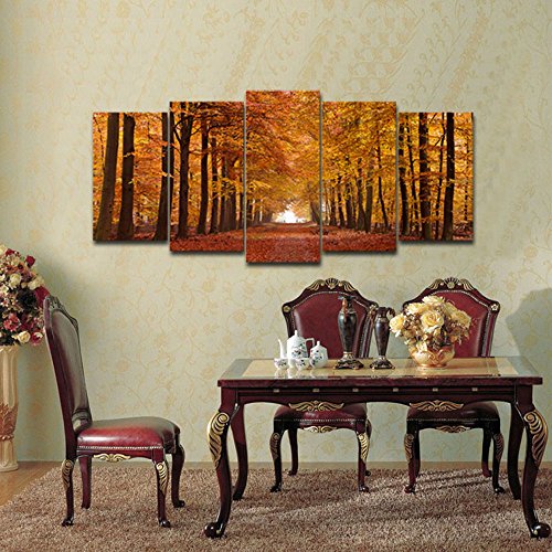 -. Title : Wieco Art Autumn Forest Modern Giclee Canvas P.R.Ints on Canvas Wall Art for Home and office Decorations P5RLA011 Size A
