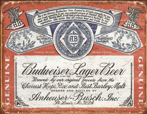 Budweiser Historic Label Distressed Retro Vintage Tin Sign , 16x13