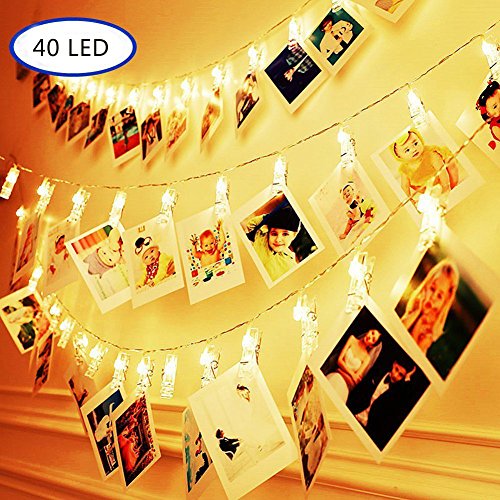 REDGO Battery Operated Warm White 40 Led Photo Clip Photo Picture Fairy Lights Indoor for Christmas Anniversary New Year Party Coffer Shop Corridor Bedroom Decoration- 5M/16.4FT