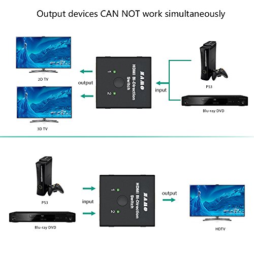ZAMO HDMI Bi-direction Switch 2 in 1 out or 1 in 2 out,LinkS 2x1 1x2 HDMI Bi-direction Switcher-Supports 4K&3D,Power Free,HDCP Passthrough