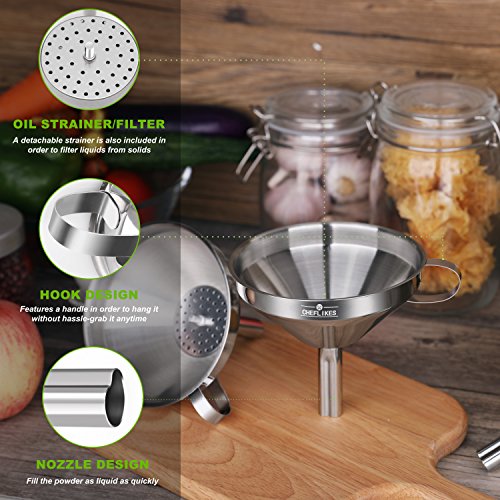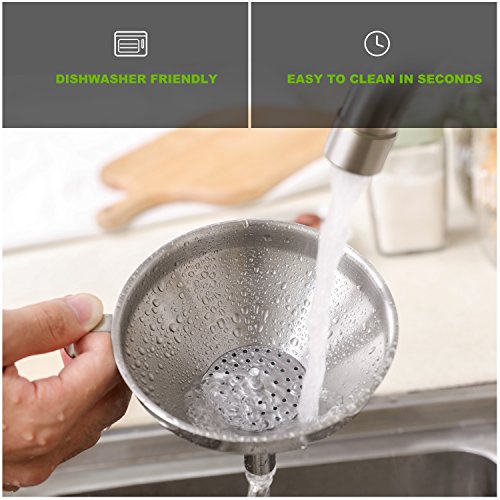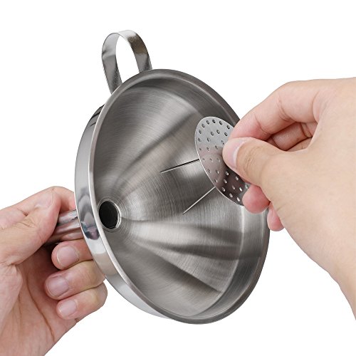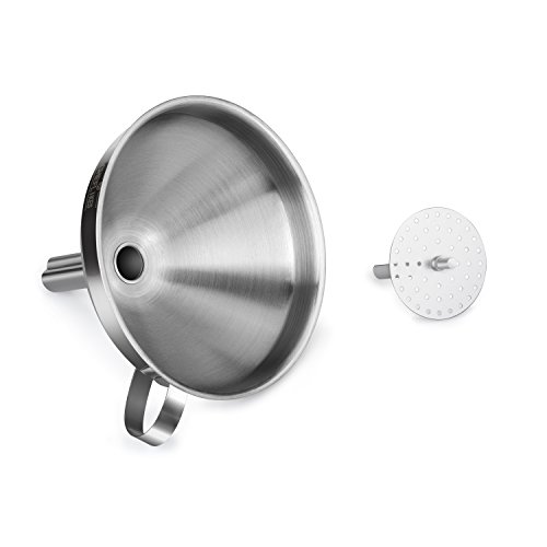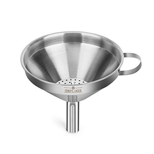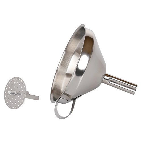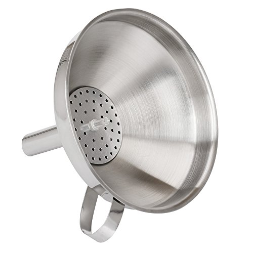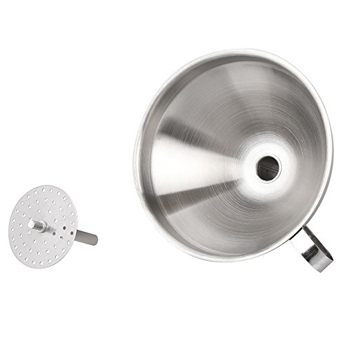 Filter Like A Pro. Upgrade Your Cooking Routine Today. Sometimes you need to filter liquids or solids in order to make your cooking routine successful. The thing is that there's a major point here- you always have to clean those spill-overs every time you need to transfer liquids from one vessel to another. You just need a tool in order to avoid that- and that tool is our funnel. It doesn't matter whether it's large necked bottles or smalls vessels you're dealing with; all you need to do is to try our funnel for exceptional results. A detachable strainer is also included in order to filter liquids from solids, or to use it when it's larger solids you have to deal with. Do it the hassle-free way; more cooking, less cleaning! Premium Quality Is Our Middle Name. Sick and tired of all those utensils that get broken or rusty after a while? No problem- now you're offered an exceptional quality funnel, made by stainless steel. Forget about this metallic taste that interferes with the quality of your food- now you can enjoy your favorite oils without a single care in this world, as stainless steel is well-known for its safe properties. A useful tool you're going to keep for a lifetime- filter it the safe way. The Best Cooking Funnel You'll Ever Have We're pretty sure that you're going to fall in love with our product, because: it features a 5 inches diameter and a 4.5 height in order to fit a large capacity of liquids, it is dishwasher friendly, it can be stored easily due to the convenient handle featured, it's durable and thicker compared to other funnels, for maximum performance. Filter Like A Pro. Order Your Own Kitchen Funnel Today. 0 |