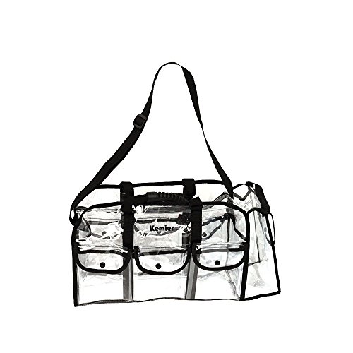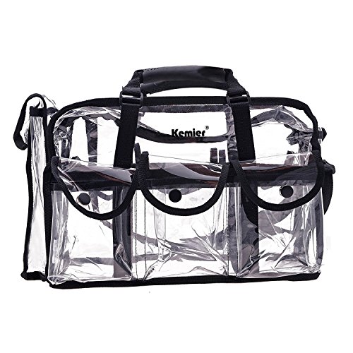 Kemier Clear Travel Makeup Bag with 6 External Pockets,Cosmetic Organizer Case with Shoulder Strap,Large
