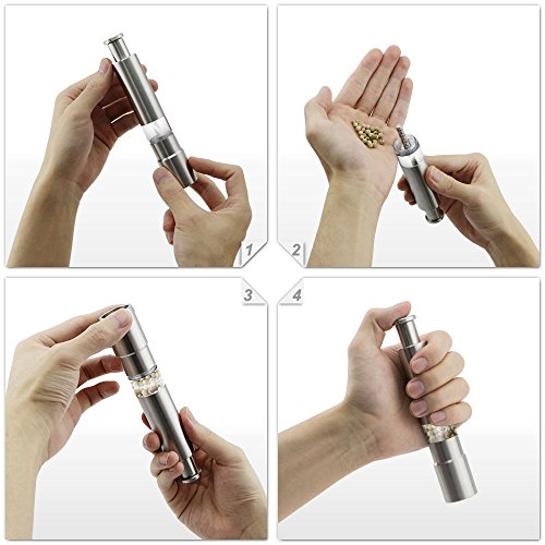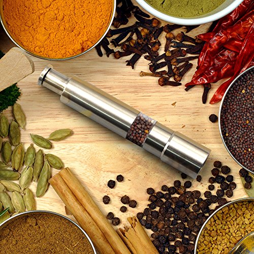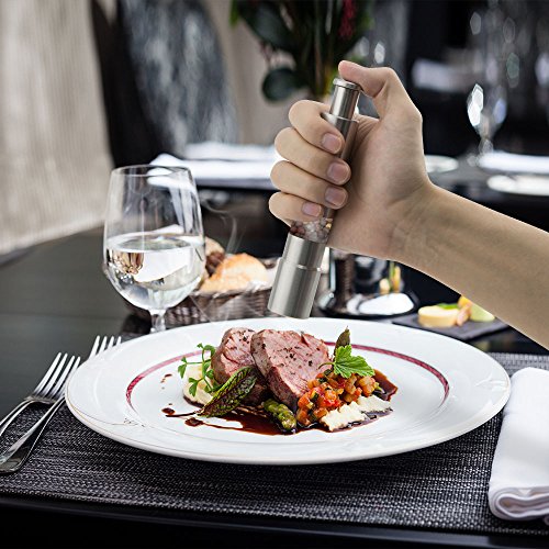 Sandure Stainless Steel Grind Salt and Pepper Mills Gourmet's Original Grinders, Manual Thumb Push Seasoning Grinder Pump