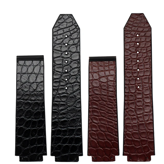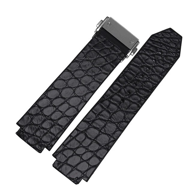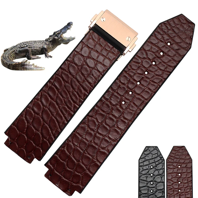[해외]25*18 미리메터 높은 품질 스트랩 정품 가죽 악어 가죽 손목 접이식 배포 버클 무료 배송