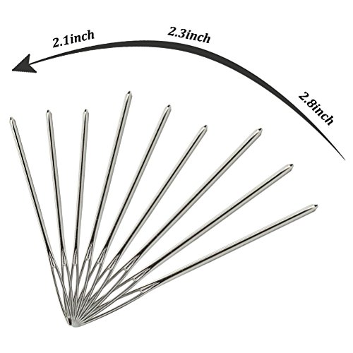 - These large eye Nickel-Plated Steel blunt yarn needles are good for weaving in ends and sewing up seams on your crochet and knitting projects. You get 9 pieces needles in three different SIZE( 5.2 cm,6 cm,7 cm) that work great for different weighted yarn.