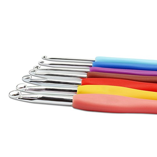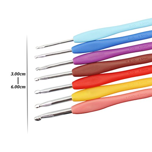 - Different Size Meet Different Requirement: 9 pieces colored ergonomic crochet hooks include size C(2.5mm), D(3.0mm), E(3.5)mm,G(4.0)mm,7(4.5mm),H(5.0)mm,I(5.5)mm,and J(6.0mm), about 5.5 inch long. 9 pieces needles include three different size 2 inch, 2.36 inch ,2.75 inch. It work great for different weighted yarn.