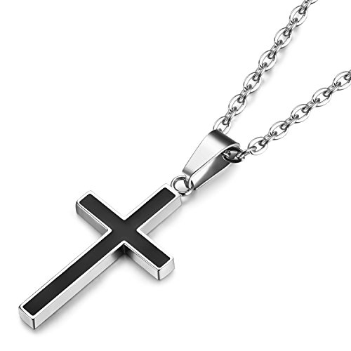 -. Title : Udalyn Stainless Steel Cross Pendant Chain Necklace for Men Women Silver-tone 22-30"