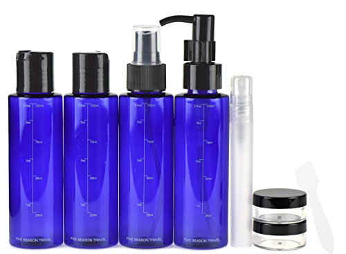 FiveSeasonStuff Leak Proof Blue with Black Cap Travel Bottle Set [TSA Approved Airline Carry-On Size] Transparent Zipper Bag and Toiletry Labels | 9...