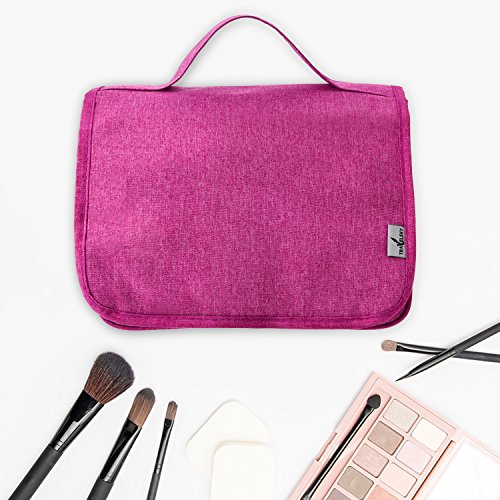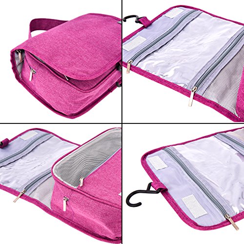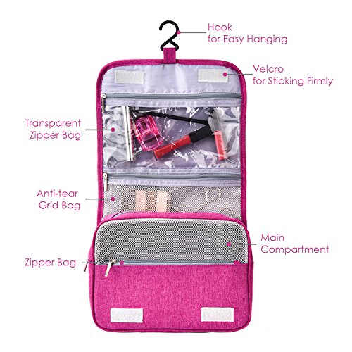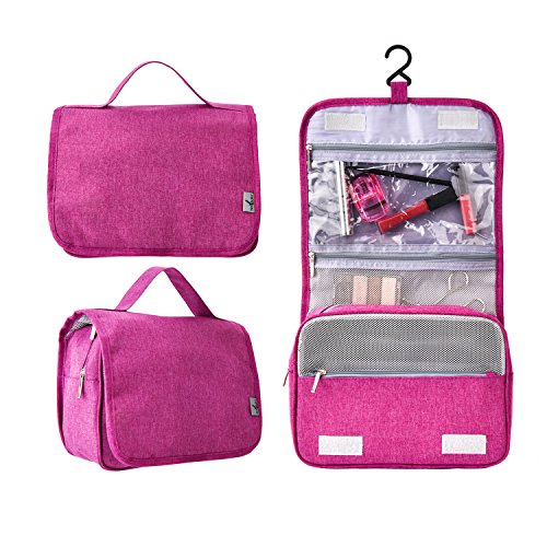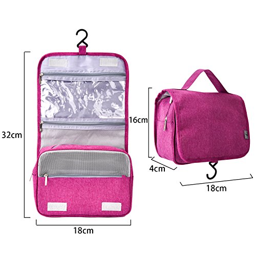 - CUTE LOOK AND PERFECT SIZE: In order to pack efficiently we designed a cosmetic bag that will fold up neatly like compact packing cube. This awesome hanging cosmetic travel organizer is just right for packing up full with all your bathroom travel essentials. It's great as a man's shower gear kit or shaving bag for the bathroom, a woman’s make up bag or a handy long-term travel kit. Water-repellent interior and various pockets simple and solid design makes it look very adorable.