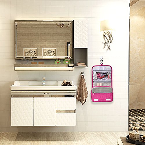 - AWESOME HANGING ORGANIZER FOR BATHROOM: The toiletry bag has a sturdy hook so you can conveniently bring it with you in the shower and hang it on towel racks, shower rods, door knob, wall hook and the like in the bathroom. You just can put your toiletries stuff in the bag to make everything tidy and organized rather than throw everything everywhere.