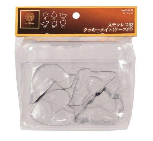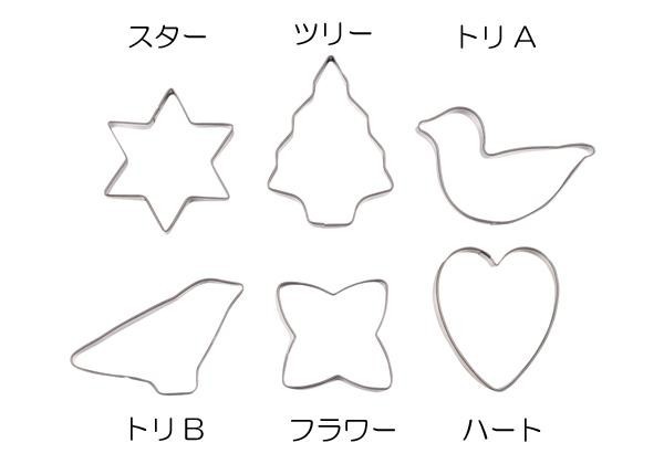 fk094igrjsかわいいクッキーが簡単に作れる抜き型ですケース付きなので収納時にバラバラになりません サイズ 個装サイズ:15×16×7cm 重量 個装重量:124g 素材・材質 抜き型:ステンレス鋼 ケース:スチロール樹脂 仕様 食器洗い乾燥機:不可 製造国 中国 収納に便利なケース付き 【各サイズ】 ・スター:幅55×奥行55×高さ18mm ・ツリー:幅45×奥行65×高さ18mm ・トリA:幅70×奥行40×高さ18mm ・トリB:幅70×奥行35×高さ18mm ・フラワー:幅55×奥行55×高さ18mm ・ハート:幅45×奥行55×高さ18mm ・ケース:幅140×奥行65×高さ110mm かわいいクッキーが簡単に作れる抜き型ですケース付きなので収納時にバラバラになりません
