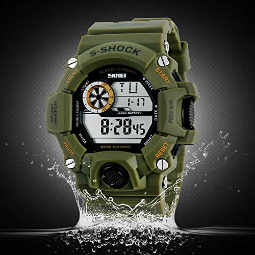 -. Title : Aposon Mens Military Digital Outdoor Electronic Water Resistant LED Sport Watch with S-Shock Multifunctional - Army Green