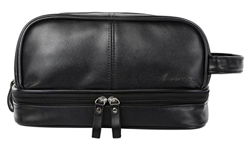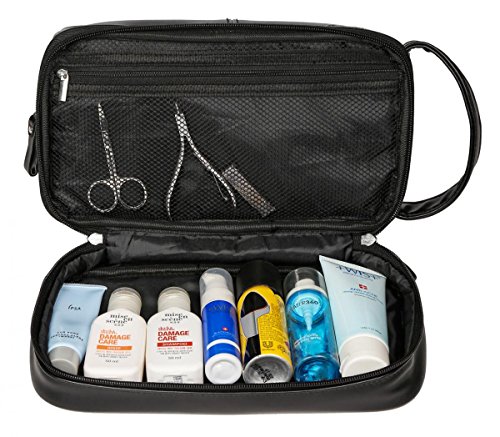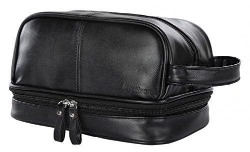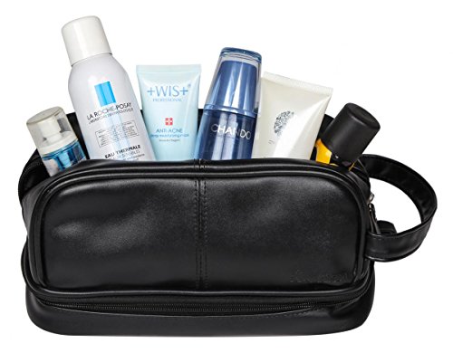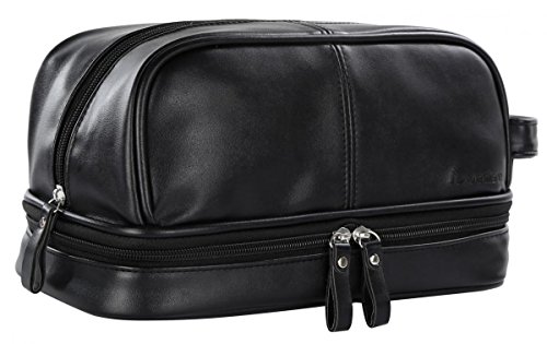 HIGH QUALITY PU LEATHER. This toiletry is made of top grade faux leather, this material features water-resistant and easy to clean, also soft and smooth to touch.