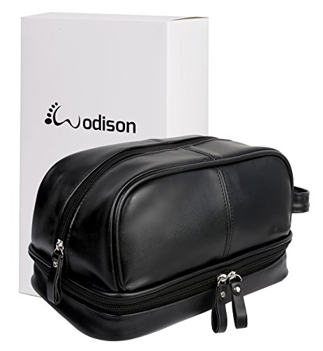 WODISON Vintage PU Leather Mens Travel Toiletry Bag Shaving Dopp Kits Organizer with Gift Box