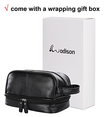 VINTAGE STYLE. The classic dopp kit style making this men's toiletry more attractive for business men and traveler. The bag comes with a box packing, perfect gift idea for Christmas, birthday, father's day or anniversary.
