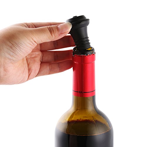 -. Feature : KEEP YOUR WINE FRESH! Pump air out of your precious wine bottle and preserve its divine taste for up to 2 WEEKS with premium Akses Royal wine saver stopper set! Made of durable RUBBER material, our wine stoppers are perfectly efficient with a vacuum pump preserver to keep your wine aroma and flavour sealed safely in the bottle until the next use. / A KILLER MONEY SAVER! No more wasted money on unfinished bottles of wine that have lost their taste and aroma! Prevent oxidation and keep your red, rose or white wine fresh and aromatic as if you have just opened the bottle, with a high-end wine pump stopper set that offers airtight universal fit for all types of wine bottles! / PRACTICAL & EASY TO USE: Air pumping has never been easier! Save yourself TIME and EFFORT on removing air from your wine bottles with our set of wine preserver stoppers! Just insert the vacuum wine stoppers into the bottle, lift the handle up and down to remove air and listen for the characteristic ´click´ to ensure safe, airtight seal for your bottle content! / A STYLISH GIFT SET: Add class and refinement to your daily or special dinner wine experience with the best wine stoppers set on the market! Offer our wine vacuum sealer stoppers set as an impressive gift on all occasions to friends, family or co-workers and all red or white wine lovers and enjoy their ear-to-ear smile! / NO QUESTIONS 100% MONEY-BACK GUARANTEE: At Akses Royal we take pride in the quality and craftsmanship of our wine saver stoppers set and back it with the friendliest customer service and full refund policy. In case you are not positively thrilled with our wine bottle stoppers, just let us know and we will return your money in full.