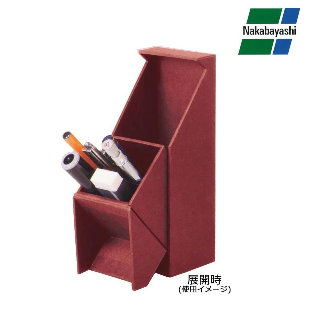 使わないときに中身が見えないすっきりとしたペンスタンドです。展開すると40度にキープされて取り出し易くなっています。 |
