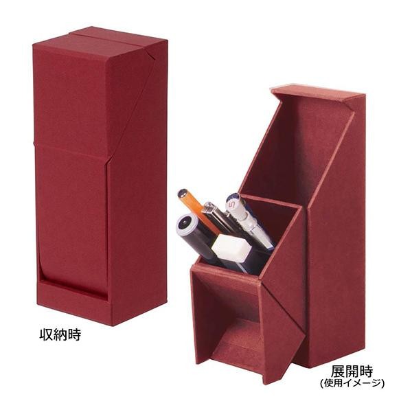 | 使わないときに中身が見えないすっきりとしたペンスタンドです。展開すると40度にキープされて取り出し易くなっています。 |