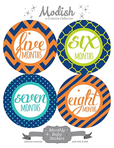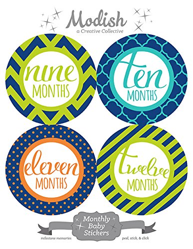12 Monthly Baby Stickers, Orange, Teal, Lime, Boy, Baby Belly Stickers, Monthly Onesie Stickers, First Year Stickers Months 1-12, Chevron, Stripes,...